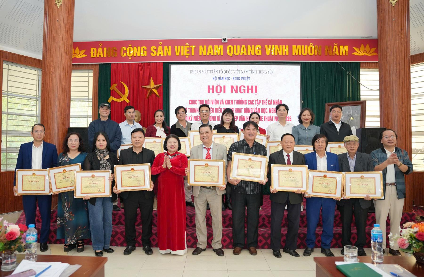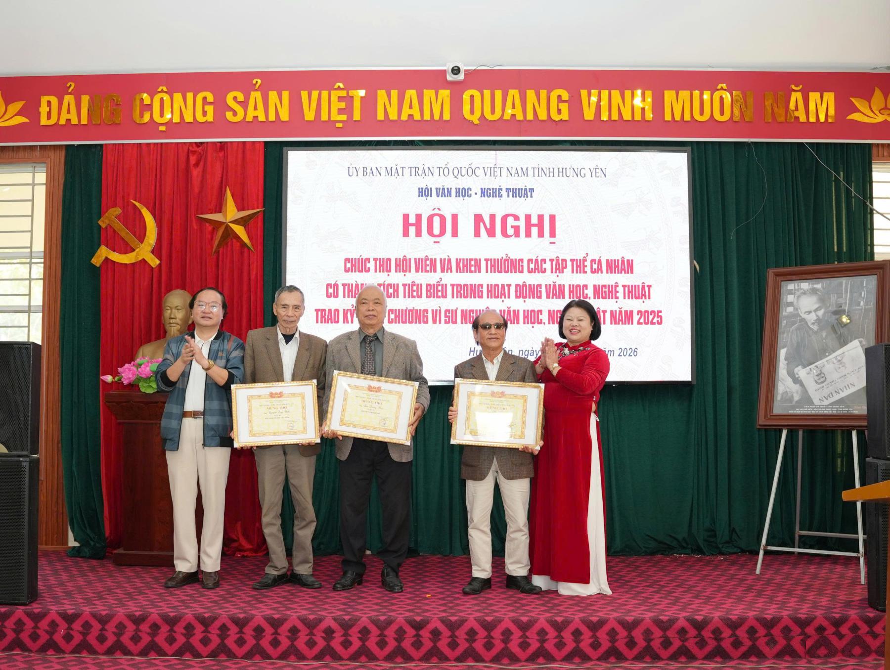 Tại Hội nghị, đồng chí Chu Huy Phương - Chủ tịch Hội VHNT, đồng chí Phan Hà, Phó Chủ tịch Hội, Tổng Biên tập Tạp chí Văn nghệ Phố Hiến đã trao Chứng nhận và quà cho 12 hội viên cao tuổi (75, 80, 85 và 100 tuổi) nhằm khích lệ, tri ân những đóng góp của các văn nghệ sĩ cao tuổi trong nền văn học nghệ thuật tỉnh nhà, đó cũng là truyền thống tốt đẹp “uống nước nhớ nguồn” mà hàng năm Hội Văn học - Nghệ thuật tỉnh Hưng Yên tổ chức.